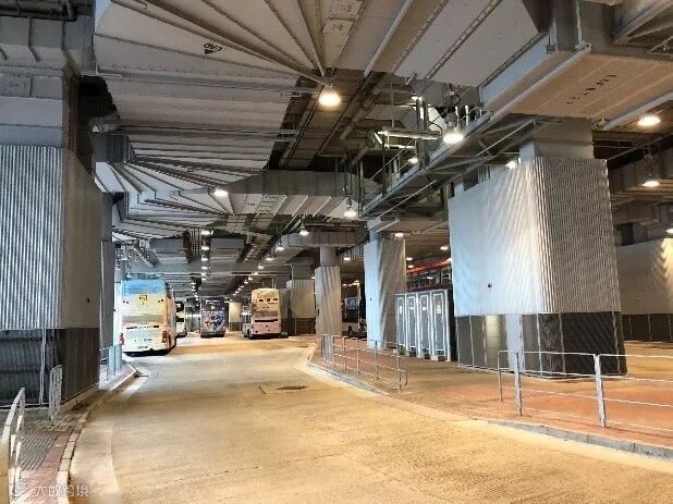 将原来位于九龙站的巴士总站调整至西九龙站北侧,共设置11条线路的到发站台,并留有30辆巴士的蓄车区。西九龙站与巴士总站之间设置了连廊和天桥实现连通。