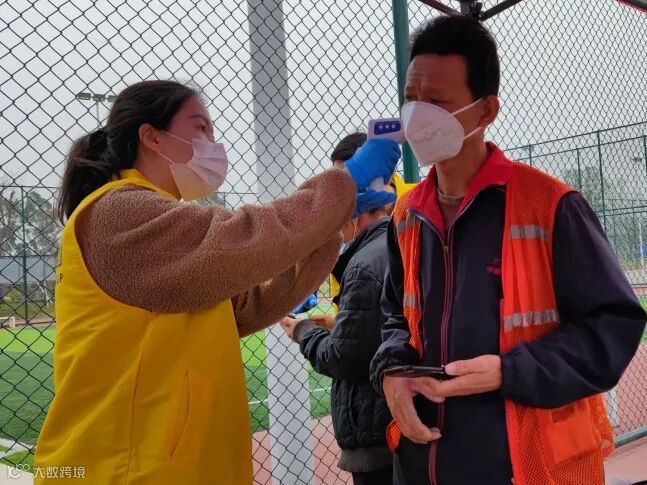 中午十二点,太阳照耀下的党徽格外的耀眼。在测温区、核酸扫码区、后勤区……无处不是志愿者们的忙碌身影。