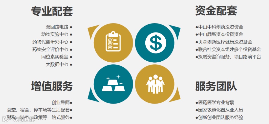 园区配套:园区专业设施、生活配套完善,配备高素质服务团队,为企业提供“一对一”“全链条落地服务,拥有多个合作孵化资金,自备融资服务功能。