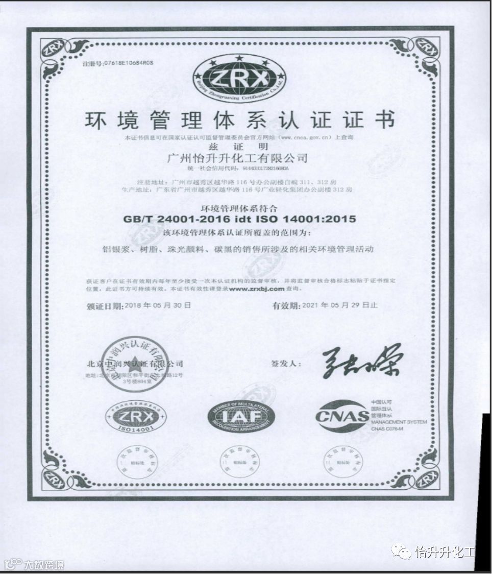 怡升集团是一家集研发、生产、销售、技术服务为一体的多元化集团公司。主要从事工业领域相关的化工产品生产和销售。 中国专业的铝银浆、珠光粉供应商