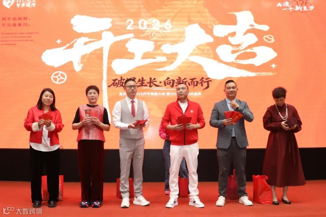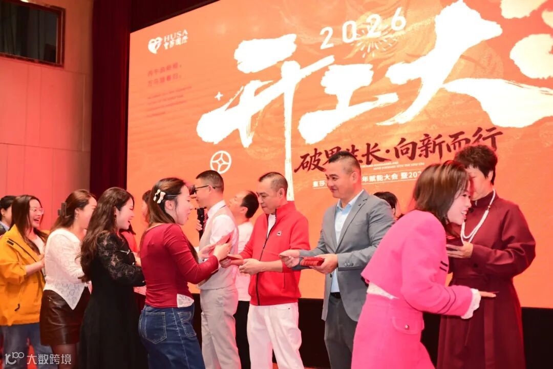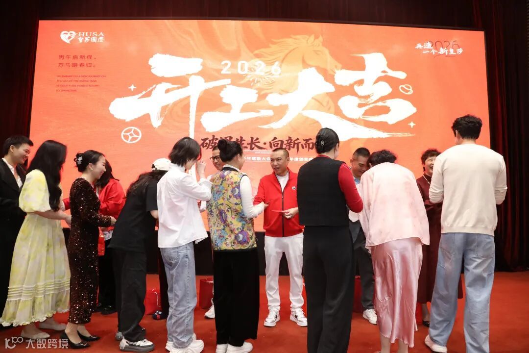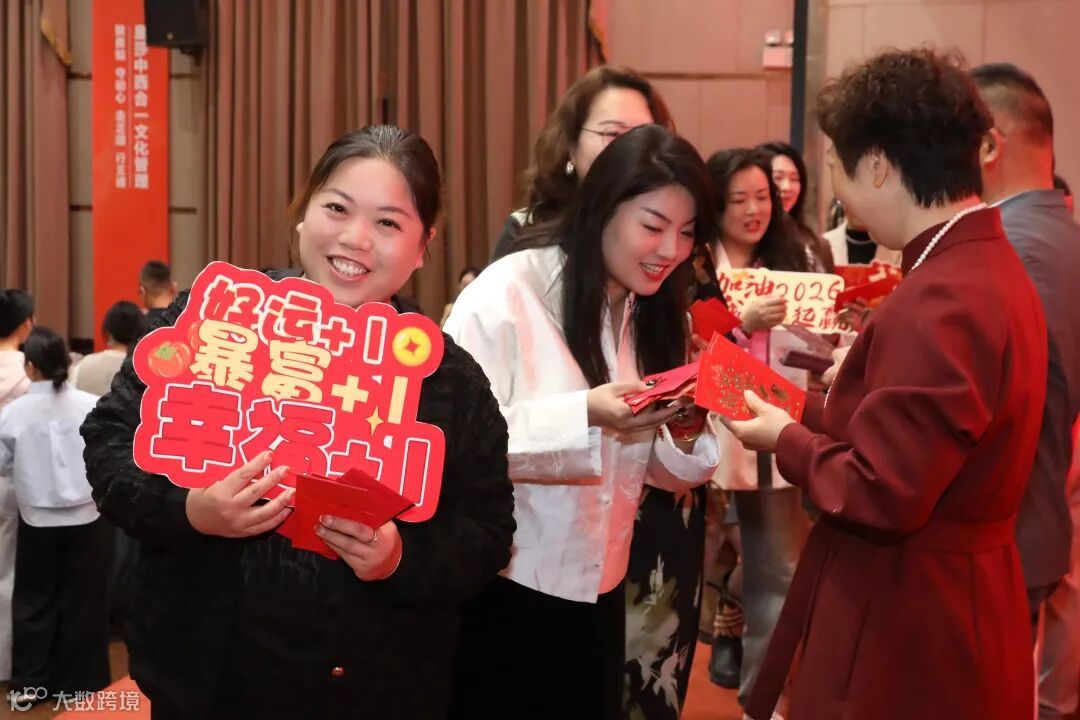 从职能部门到业务一线,从资深前辈到新入职伙伴,一张张洋溢着喜悦的脸庞,一双双接过祝福的手掌,传递的不仅是一份沉甸甸的心意,更是集团对每一位奋斗者的认可与期许。“开工大吉!”“2026大卖!”的欢呼声此起彼伏,整个会场暖意融融,喜庆的氛围瞬间拉满。