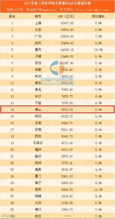前些日子,2017年全市前三季度经济形势分析会透露,前三季度佛山GDP达6870.74亿元,同比增长8.6%。
