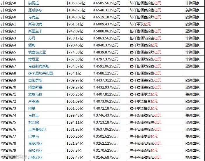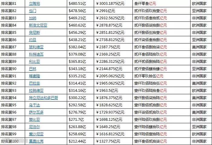 我们以2017年全球GDP的预测排名来对比一下