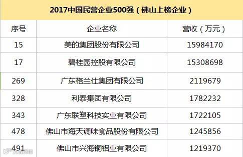 中国民营企业500强,佛山就有7家企业上榜
