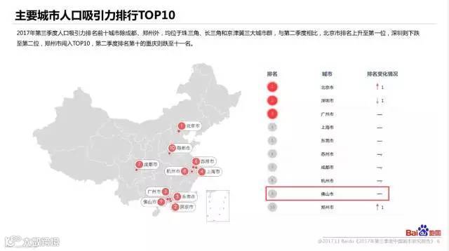 《2017年第三季度中国城市研究报告》显示,佛山人口吸引力进入全国前十