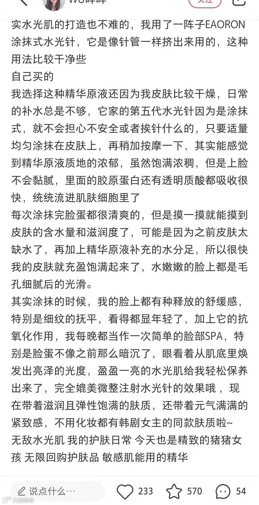 这次给大家介绍一款护肤黑科技,用完皮肤像打过水光针一样嫩滑透亮,来自澳洲一线护肤品牌Eaoron澳容第五代涂抹式水光针。
