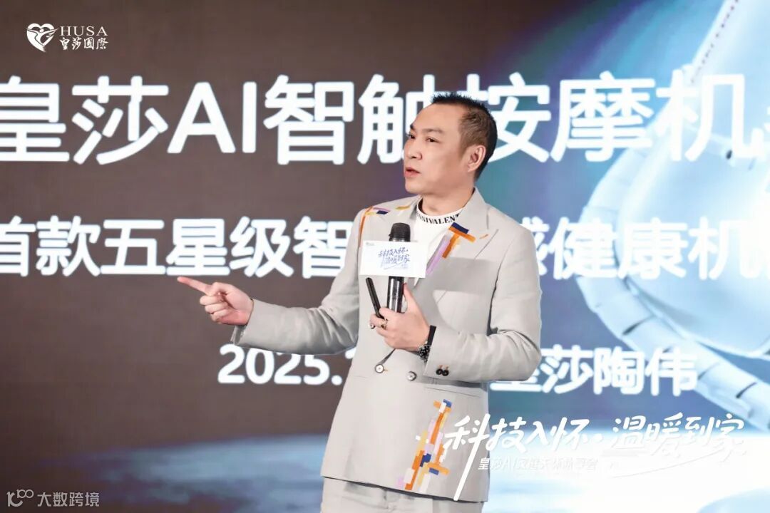 针对现场发布的【皇莎AI智触按摩机器人】,陶董详细介绍其核心亮点:依托精准AI算法,机器人可实现手法标准化、力度精准化、服务个性化,既能精准匹配客户护理需求,又能与员工形成高效“人机协同”,辅助员工提升服务效率与质量。陶董强调,这一全新设备的推出,正是皇莎“科技入怀·温暖到家”理念的具象化落地,将推动美业服务从“人工主导”向“人机协同”升级,为门店运营降本增效,为客户带来更优质、更稳定的服务体验。