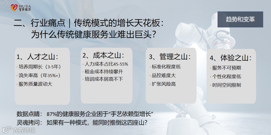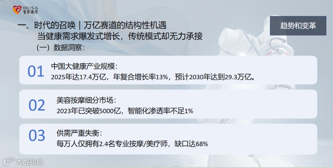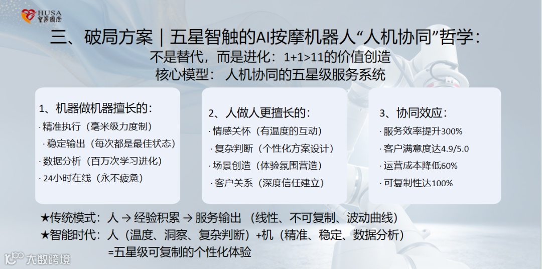 他表示:“这不是按摩升级,这是行业重写:从人力服务,到人机协作,再到人机协同全智能时代——我们正站在第三个路口。”并提出“用智能,重新定义触达;用科技,标准化的关爱”的核心理念,引发全场共鸣。