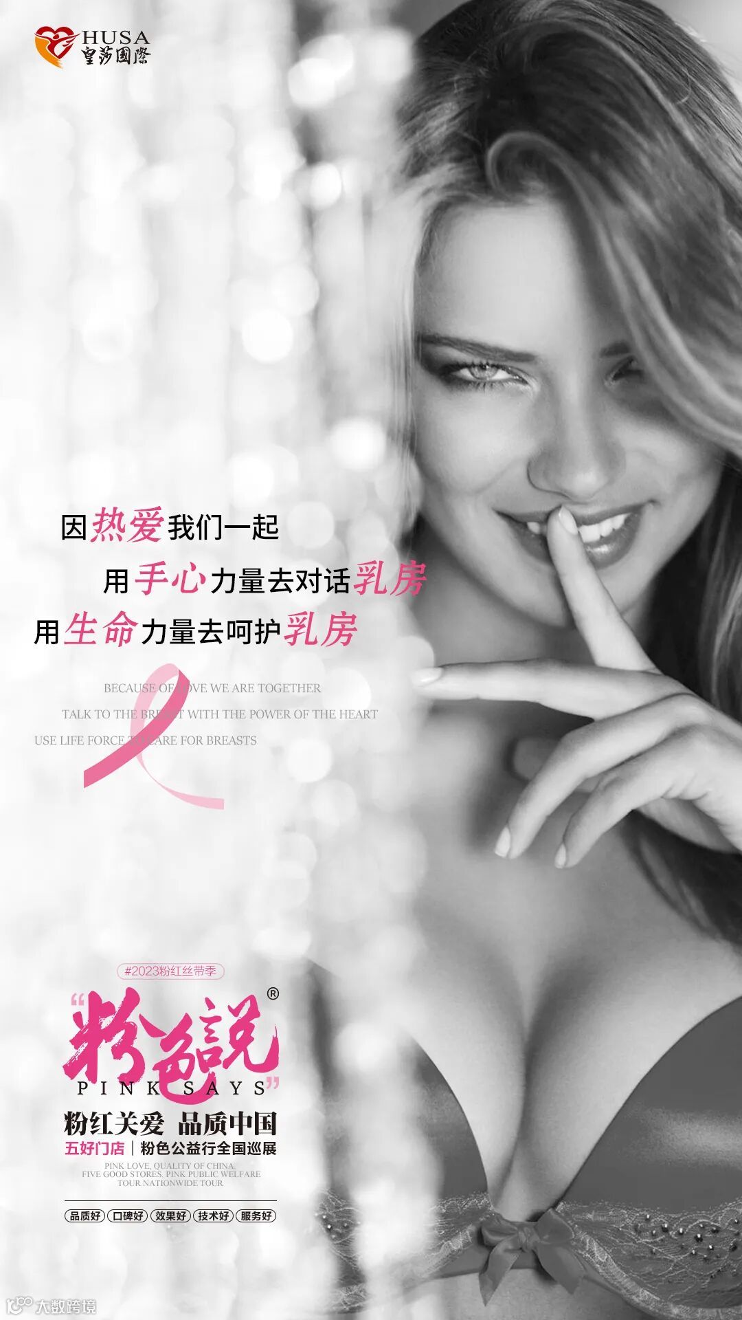 众所周知,每年10月开始,便进入粉红关爱季,世界各地粉色力量汇聚一起,呼吁关注并付诸行动重视且呵护女性乳房健康意识。2023年,皇莎发起[粉红关爱·品质中国]-五好门店|粉色公益全国巡展活动,进一步落实:让好的产品,专业的服务能下沉至每一位用户,让所有女性都能用得起、用得好、用得上皇莎胸部产品!这一伟大目标!呵护乳房健康,绽放粉色力量!我们一起行动!