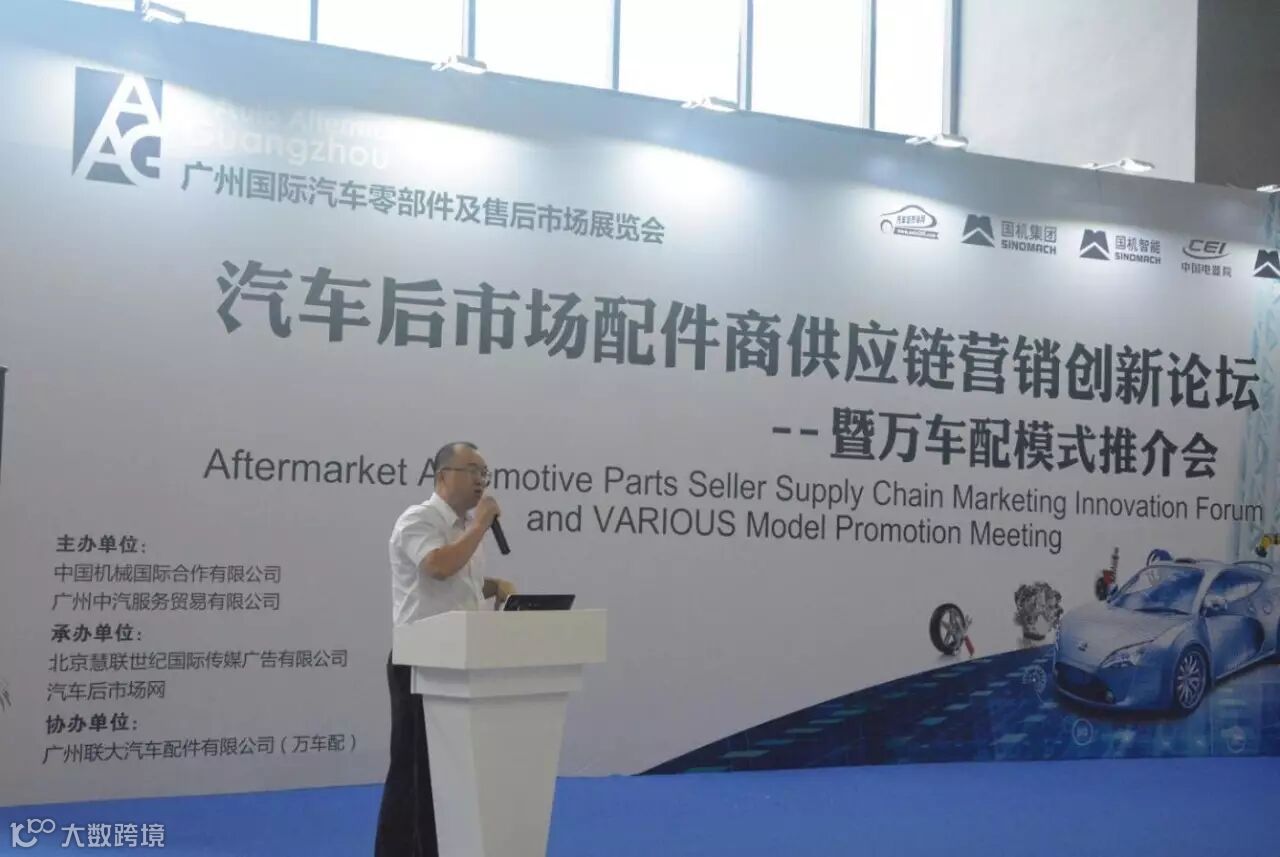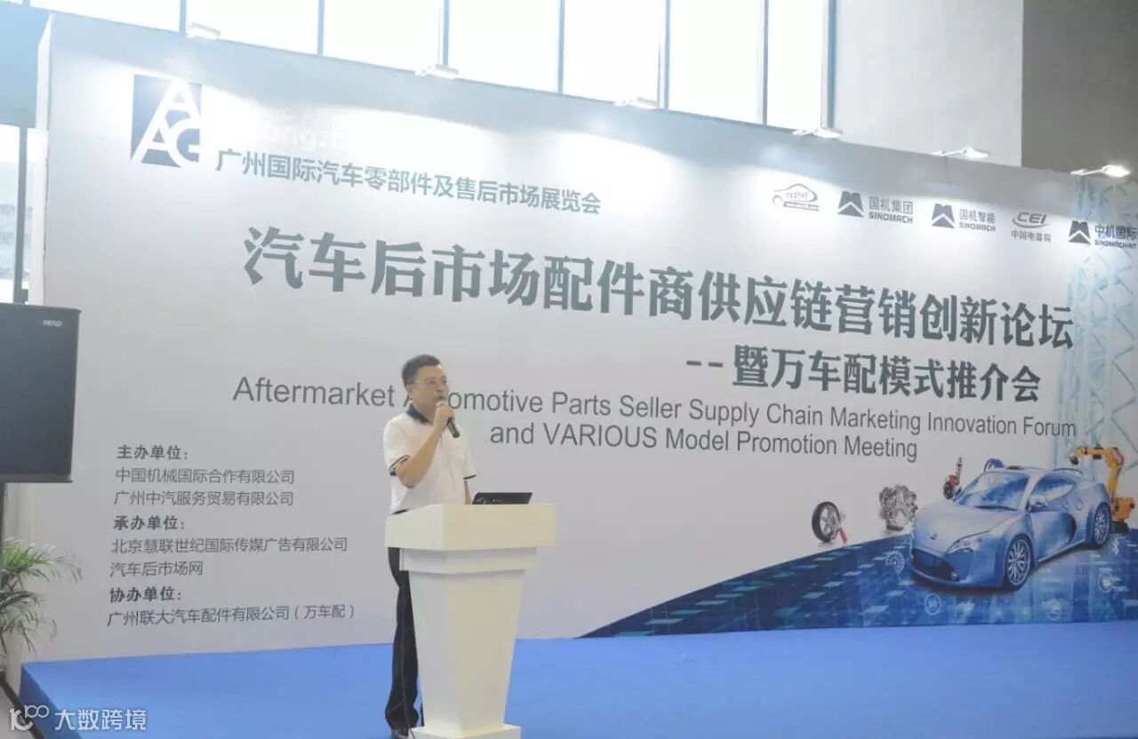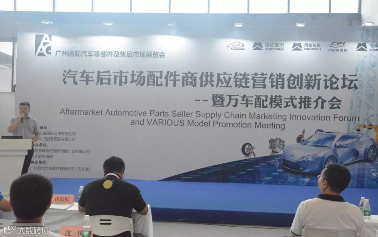 2017年6月1日,广州联大(万车配VARIOUS)汽车配件有限公司全国授权分销商正式启动,到2017年8月份全国各地现有(万车配VARIOUS)品牌授权分销商300多家,并在此次展会期间大力推广(万车配VARIOUS)品牌授权分销商模式;我司在展馆三层6号馆1号会议室进行《广州国际汽车零部件及售后市场展览会——汽车后市场配件商供应链营销分销商论坛暨万车配VARIOUS模式推介会》演讲。