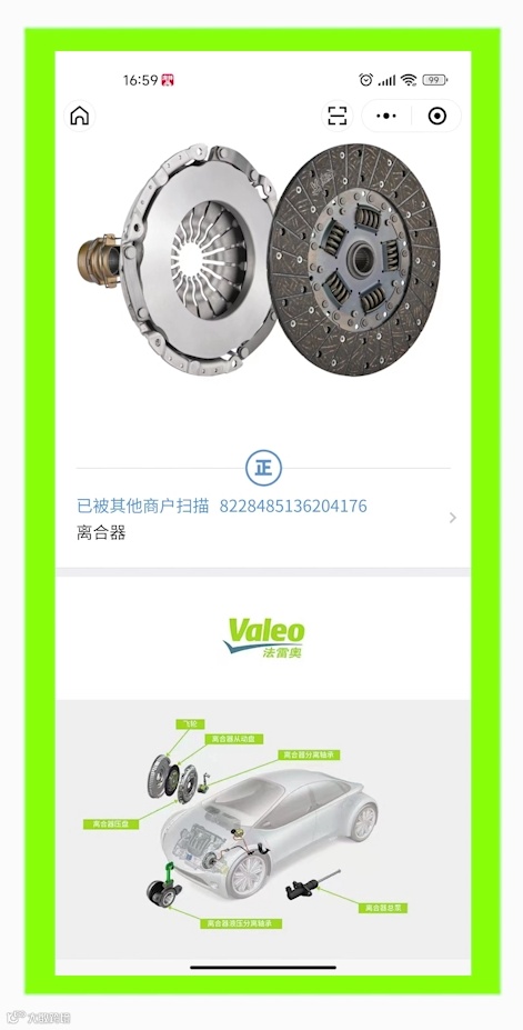 2. 手机微信扫描标签上的二维码进入法雷奥售后专属页面