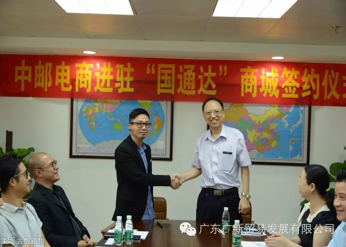 7月2日下午,广新发展与中邮电商在广新发展16楼会议室举行了中邮电商进驻“国通达”商城合作协议签订仪式。广新发展总经理曹一平、中邮电商行政总裁陈启成代表双方签署合作协议。标志着“国通达”商城合作商家即将全面进驻,掀开了跨境电商商城合作的崭新一页。