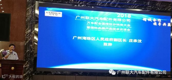 广州海珠区人民政府副区长 庄承汶,百忙之中抽时间来参加此次广州联大-万车配全国授权分销商大会,并在大会上致辞,祝大会取得圆满成功。