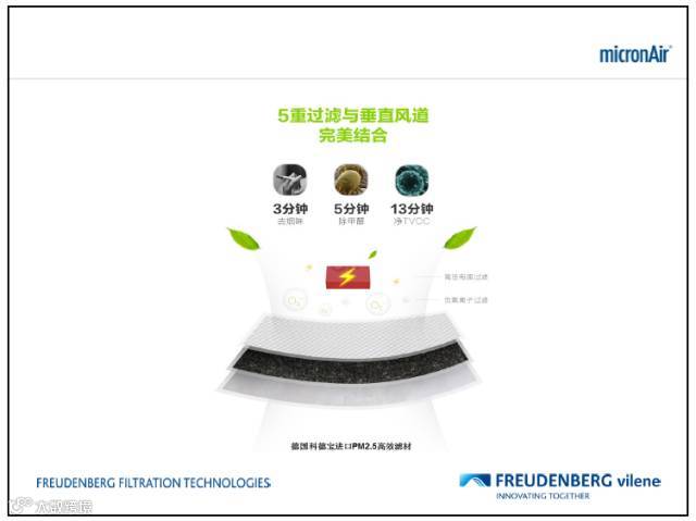 对于空气净化器而言,滤网是最关键核心的部件,滤网的用材及质量十分重要。全新上市的micronAir® 每刻爱车载空气净化器AP100的滤网采用了科德宝专利技术的多层加炭布过滤结构,将粉碎状活性炭(经特殊处理)小颗粒均匀分布在两层无纺布之间(类似于三明治结构),这样的结构使得活性炭的吸附面积更大,吸附能力更强,净化速度更快,效果更佳,实现车内空气的全面保护,可谓一“网”在手,驾乘无忧。