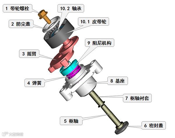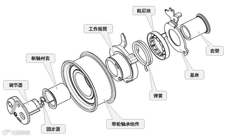 自动张紧轮特点:自动张紧皮带,不需要二次调节张力,皮带张力由张紧轮决定,一致性好;运行时,皮带松边张力变化不大,维修时,安装方便;初始张力较小,系统寿命较长。