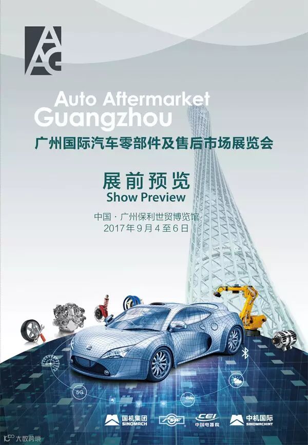 广州国际汽车零部件及售后市场展览会(AAG)定于2017年9月4日-6日在广州市“保利世贸博览馆”举行。