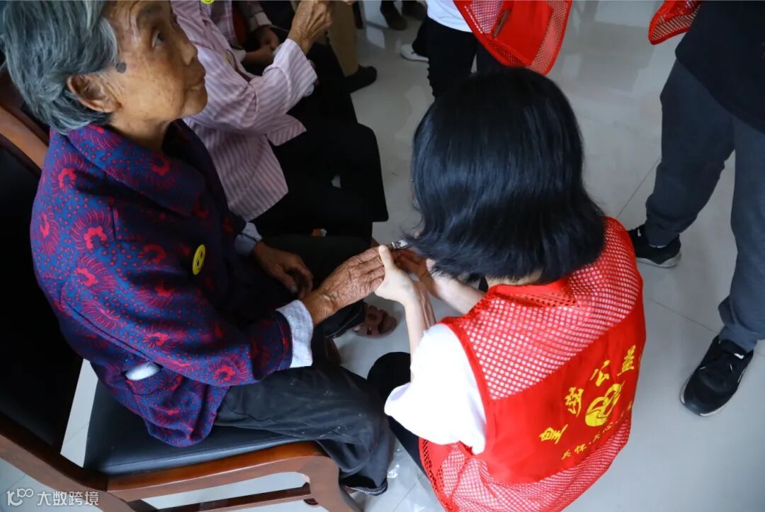 在志愿者关爱的问候与互动之中,老人家质朴且略显激动的笑颜,无一不震撼着大小志愿者的心灵。