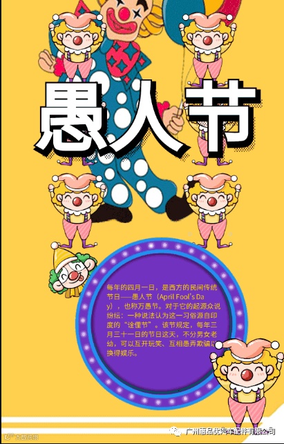 愚人节(April Fool's Day或All Fools' Day)也称万愚节、幽默节,愚人节。节期为公历4月1日,是从19世纪开始在西方兴起流行的民间节日,并未被任何国家认定为法定节日。在这一天人们以各种方式互相欺骗和捉弄,往往在玩笑的最后才揭穿并宣告捉弄对象为“愚人”。