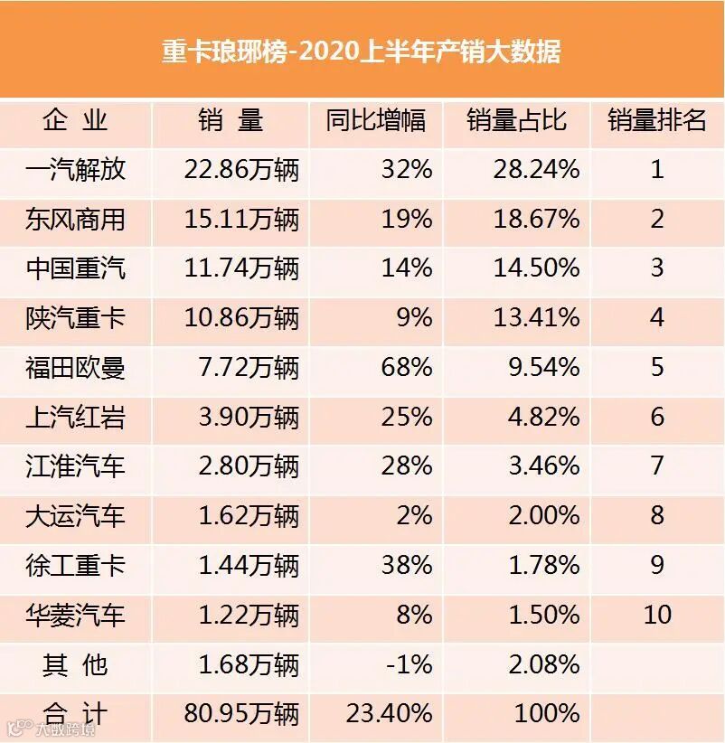 头部企业市场份额进一步提升,重卡市场正加剧由战国时代向三国时代演变!