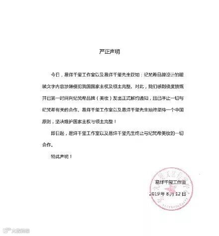 各品牌的代言人们也纷纷发出终止合作的声明以表立场。