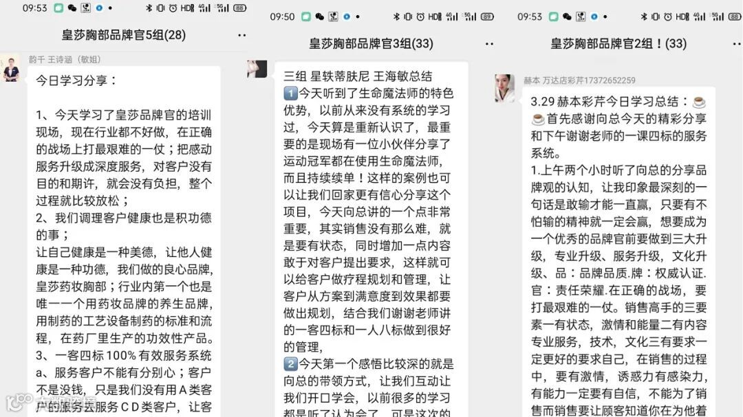每天课程结束后,所有学员都非常认真的写下了学习心得并分享到学习群中,他们的努力,他们的精神,互相感动并互相鼓舞着。他们在课程中已经成为了更好的美业人!未来的他们必将是一位位合格且绝对优秀的美业人!