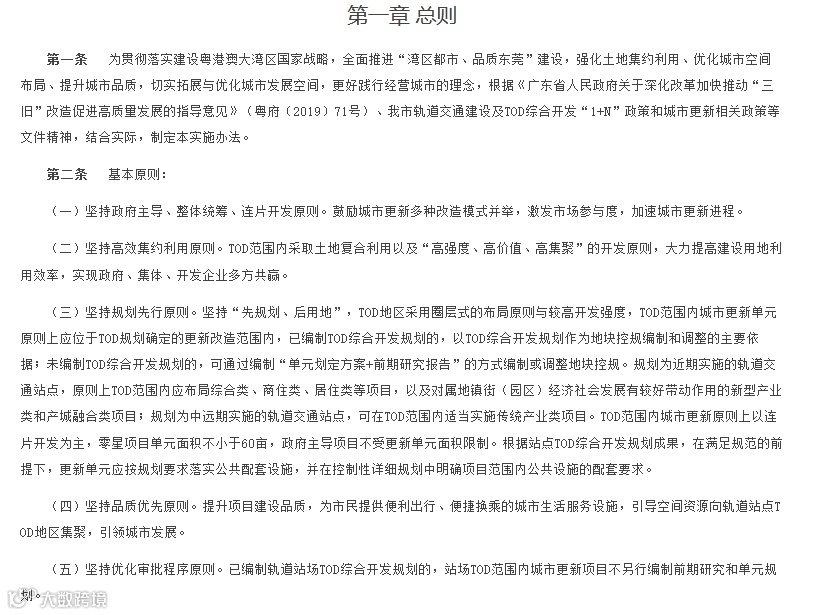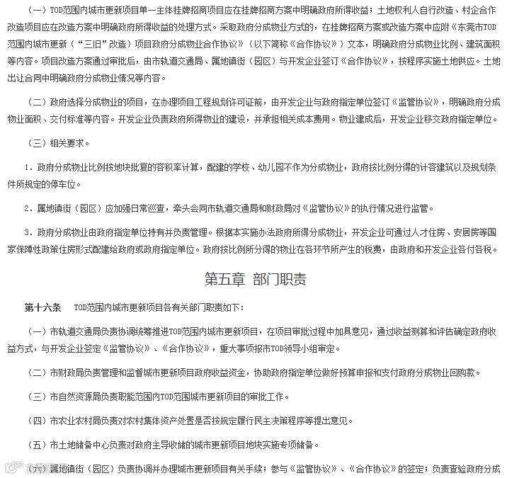 第五部分“部门职责”阐述了各部门职责分工等内容,保障TOD范围内城市更新项目的顺利推进;