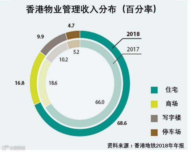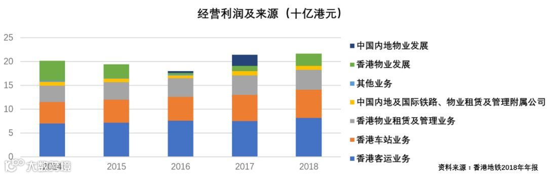土地与交通的整合实现了综合最大收益,这也体现在港铁自身的盈利之中,在2018年的经营利润构成分析中,直接与物业的开发与租赁管理相关的部分合计比例达到35.5%,如果考虑到香港车站商务中的绝大部分来自车站内部的零售物业,则与“物业”相关的利润超过50%。