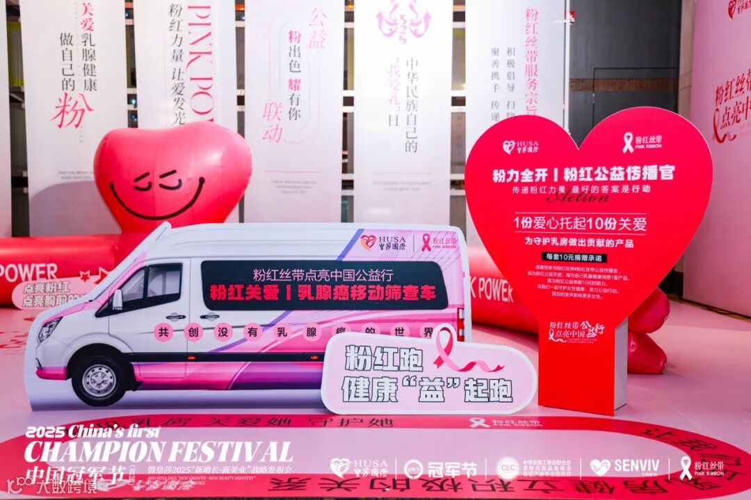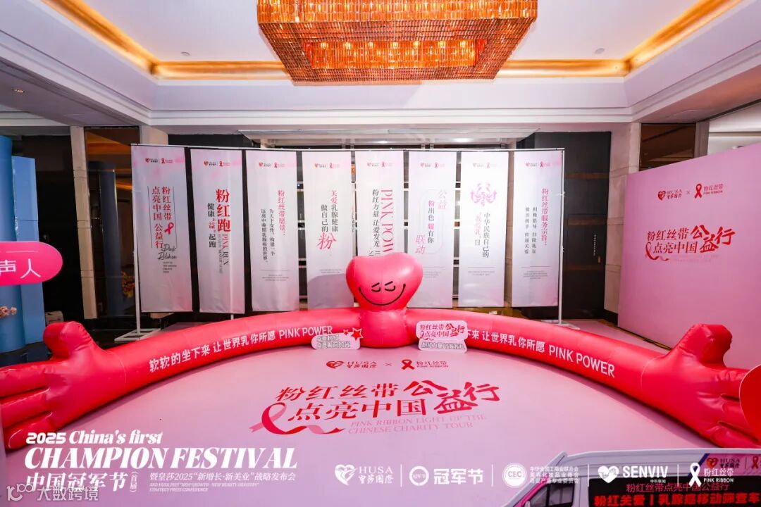 皇莎一直致力于推动粉红丝带·关注乳房健康,关爱女性等公益活动及事业的发展。本次大会上向粉红丝带公益组织捐赠100万人民币,用于推动女性健康的系列公益活动。
