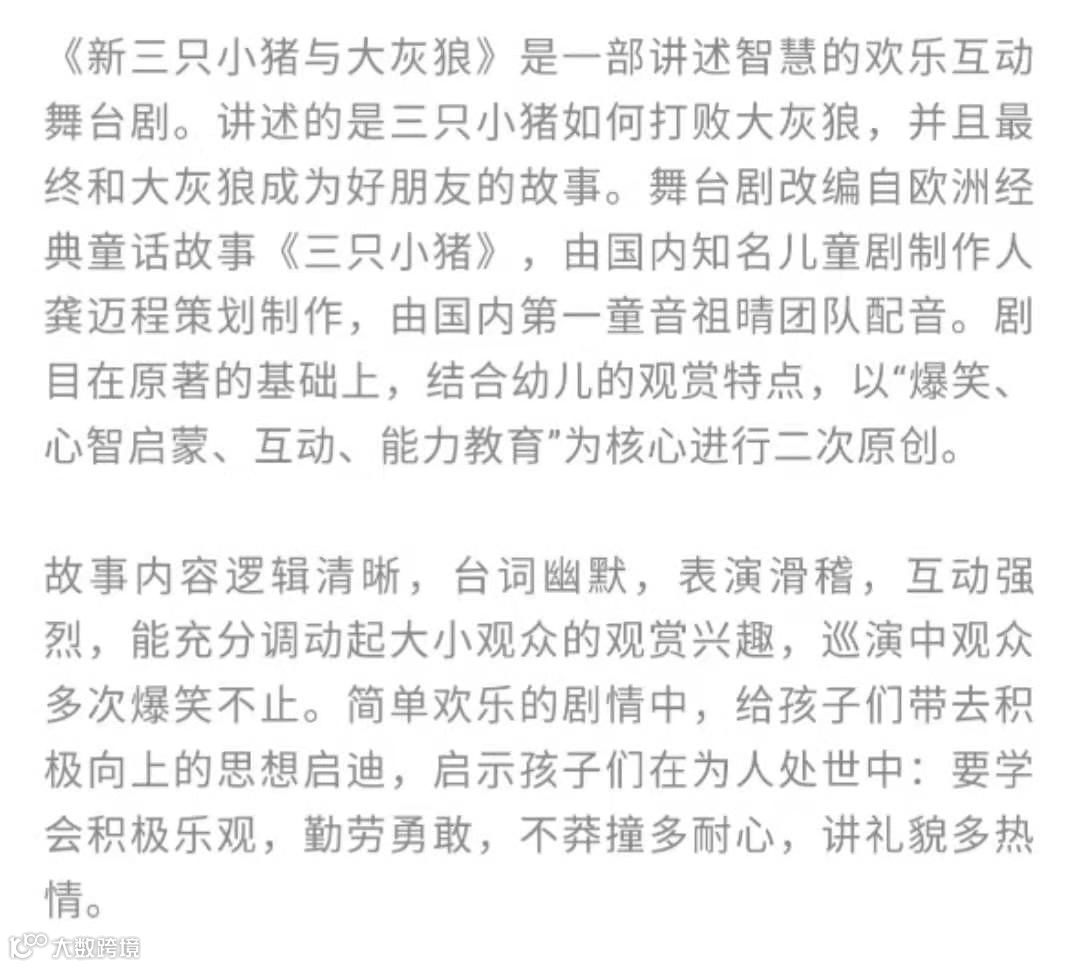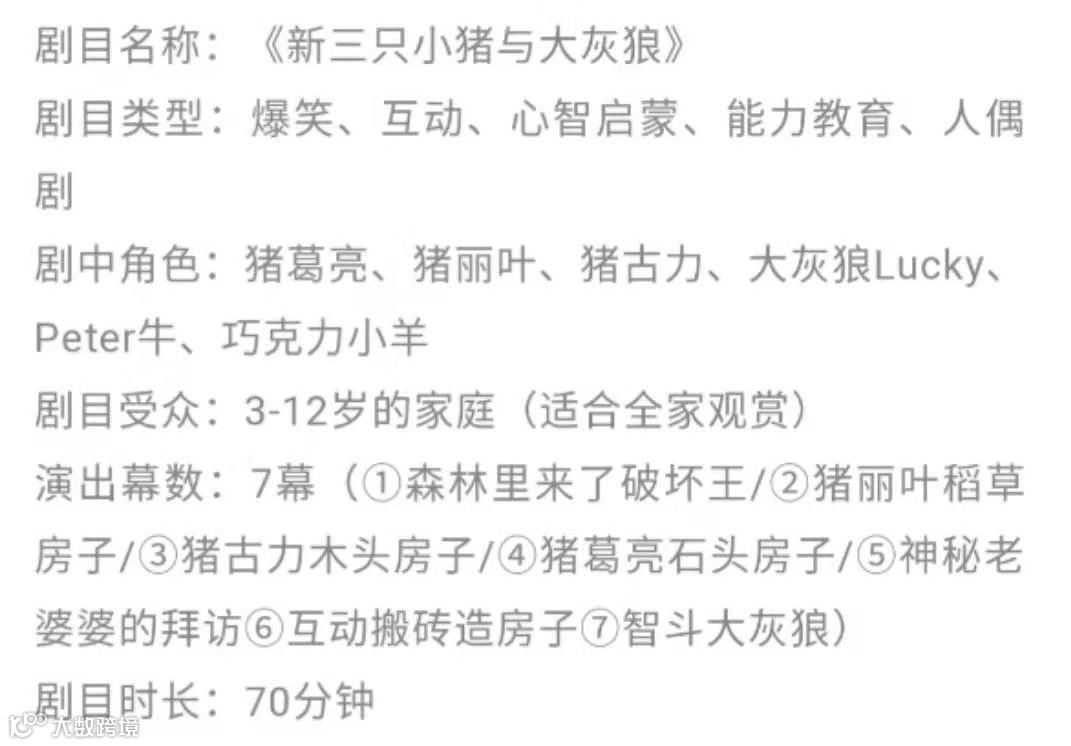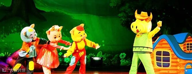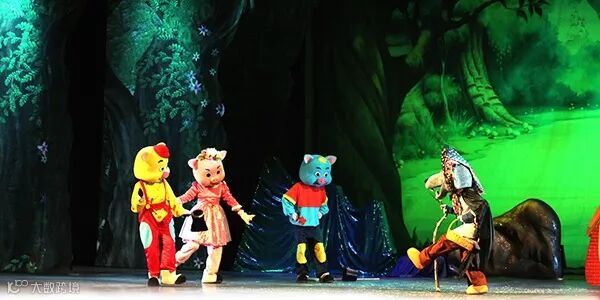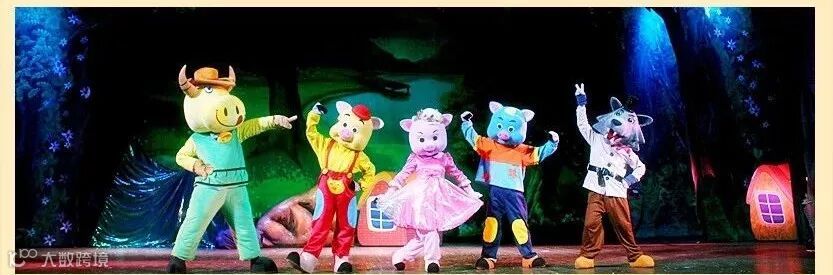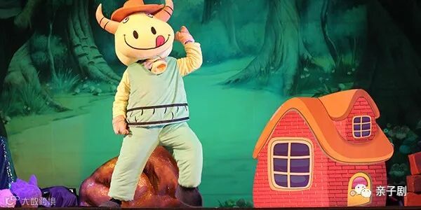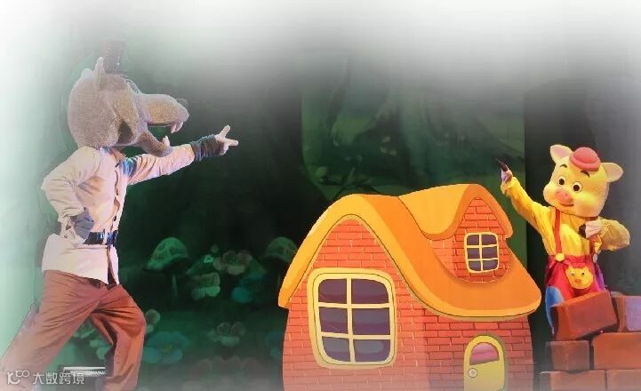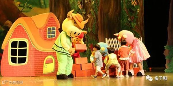 4、剧情互动:猪葛亮坚硬的石头房子抵挡住了大灰狼,却没料到被鲁莽的Peter牛给撞倒了。Peter牛赶忙请10-20位小朋友上台帮忙一起帮助猪葛亮造房子。