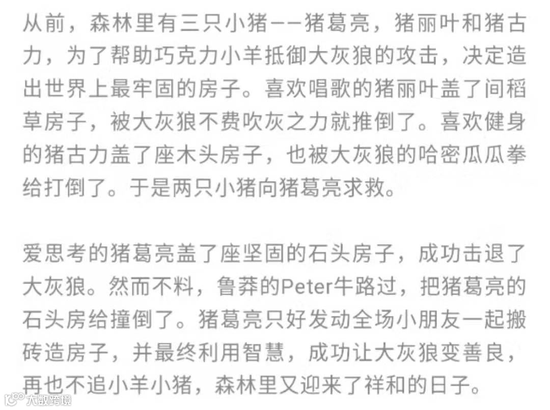 3、剧情互动:聪明的猪葛亮用石头盖了一座坚固的房子,并请求小朋友如果发现了大灰狼,一定要告诉他。