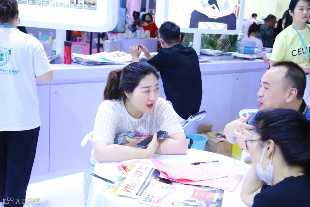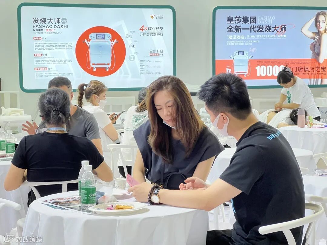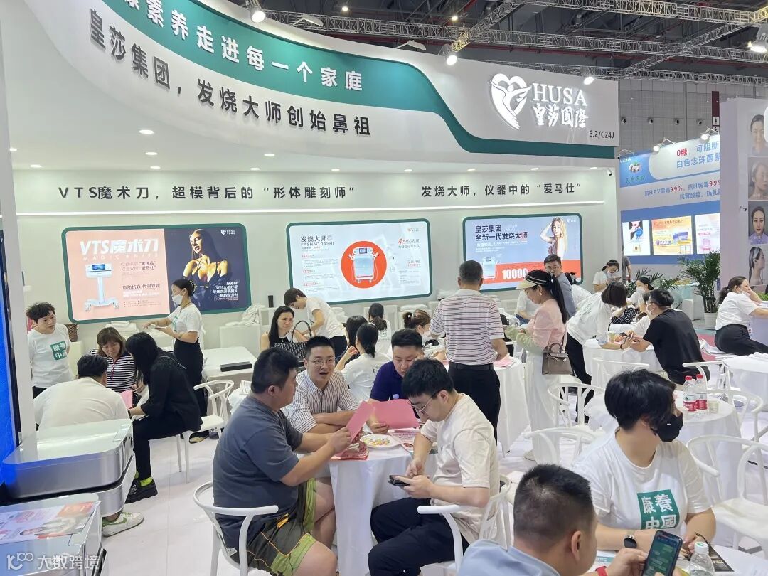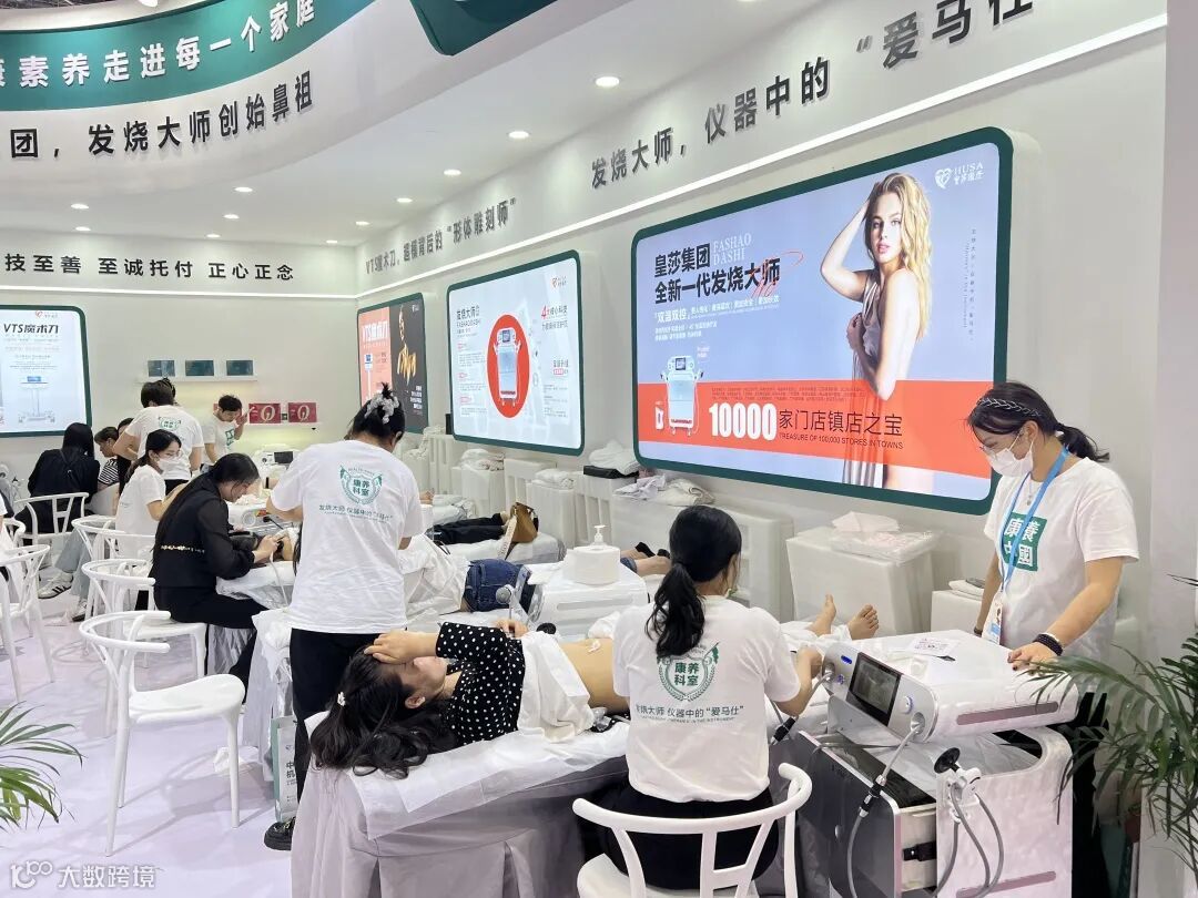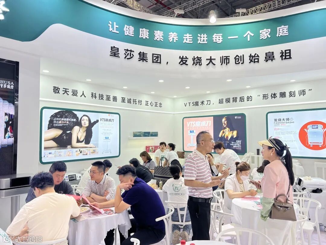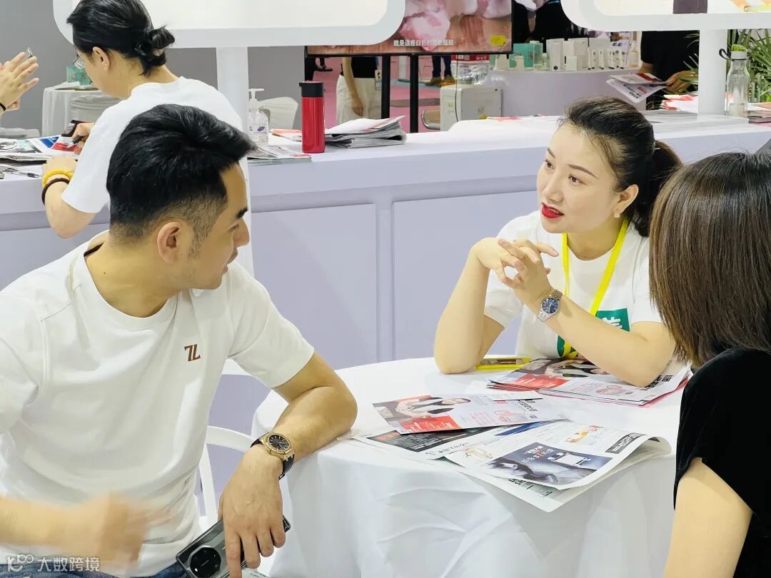 皇莎展馆俨然成为美博会现场会火爆的展馆,前来体验、咨询、洽谈的顾客络绎不绝。