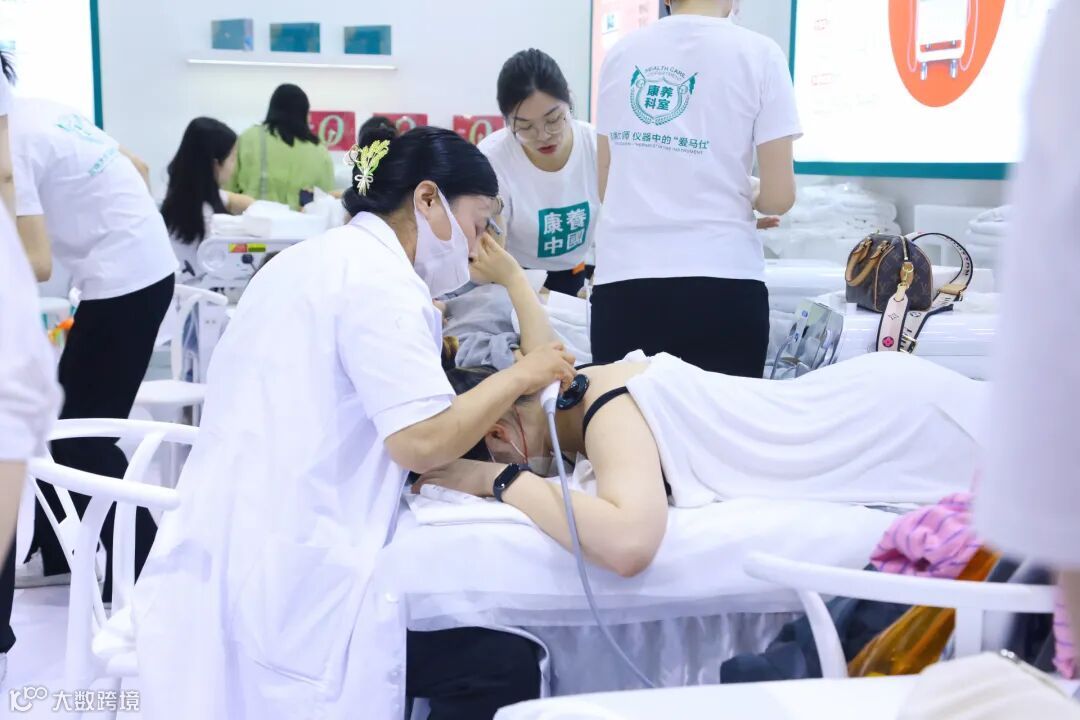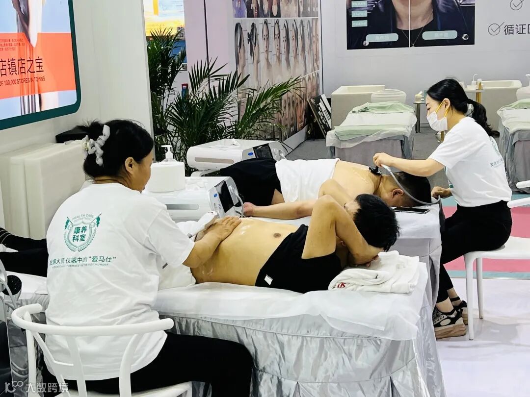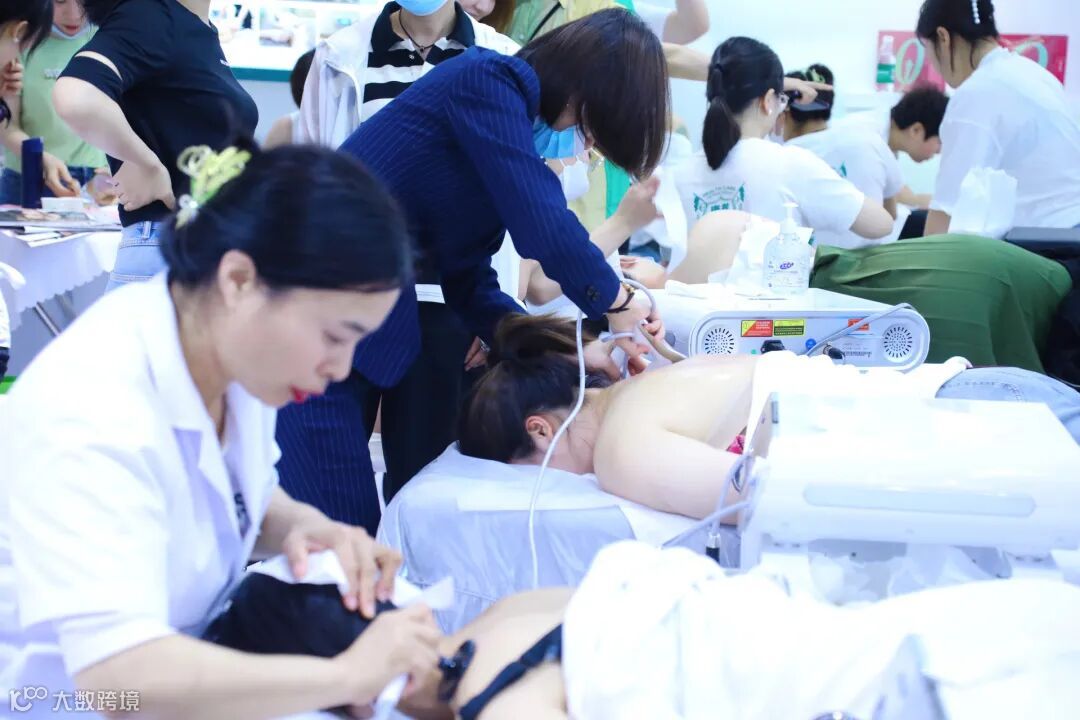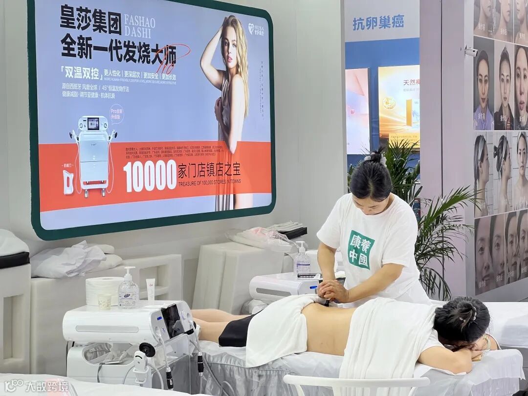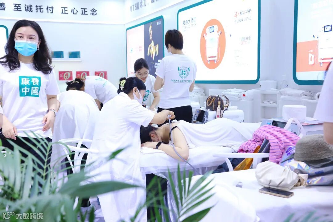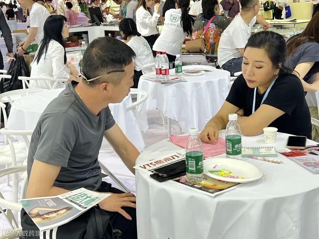 皇莎展馆俨然成为美博会现场会火爆的展馆,前来体验、咨询、洽谈的顾客络绎不绝。