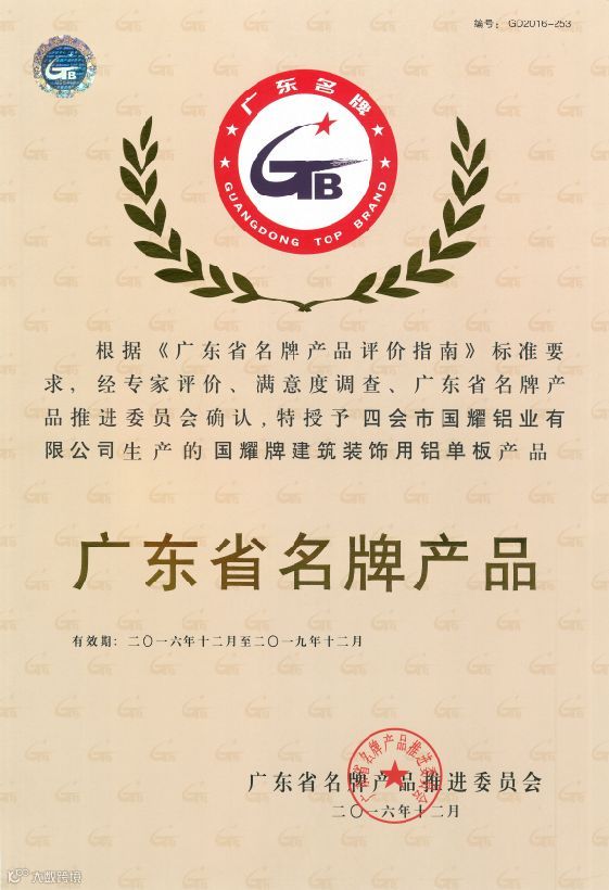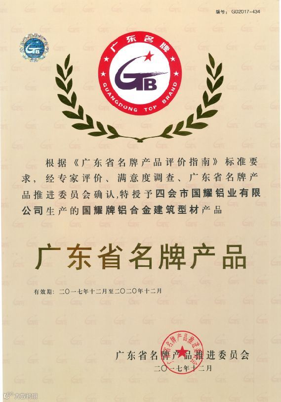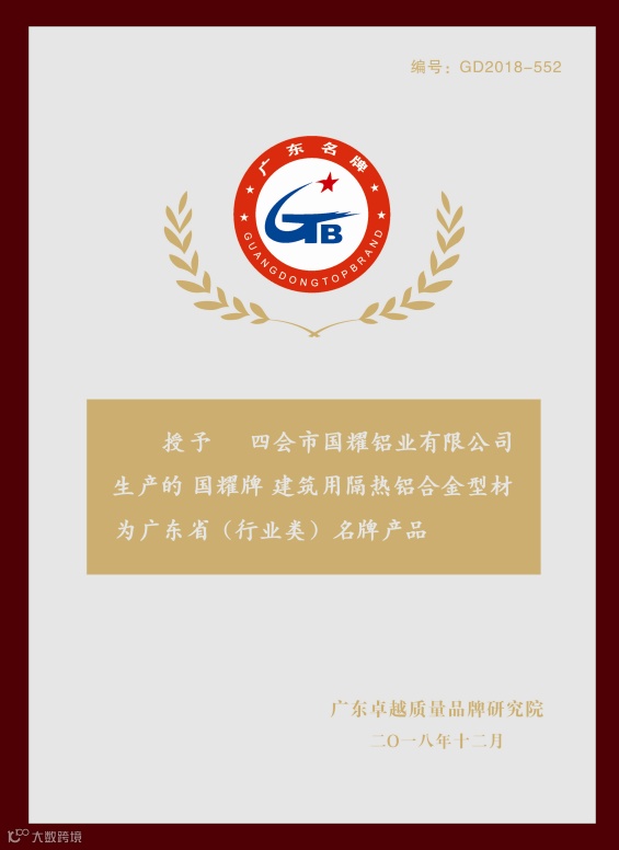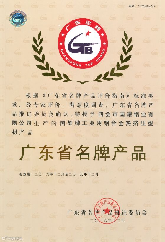 获得“广东省名牌产品”称号,对于国耀铝业来说,不仅是荣誉,更是业内专家对国耀品牌的认同和肯定,是政府部门及广大用户对国耀产品及品牌的高度支持与信任。