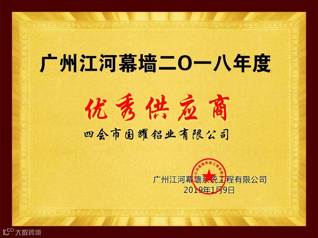 源于品质,所以信赖。国耀铝业作为广州江河幕墙系统工程有限公司的长期战略合作伙伴,本次“年度优秀供应商”的评获,不仅是对国耀铝业产品及服务的最佳肯定,更是对今后双方紧密合作的积极激励。