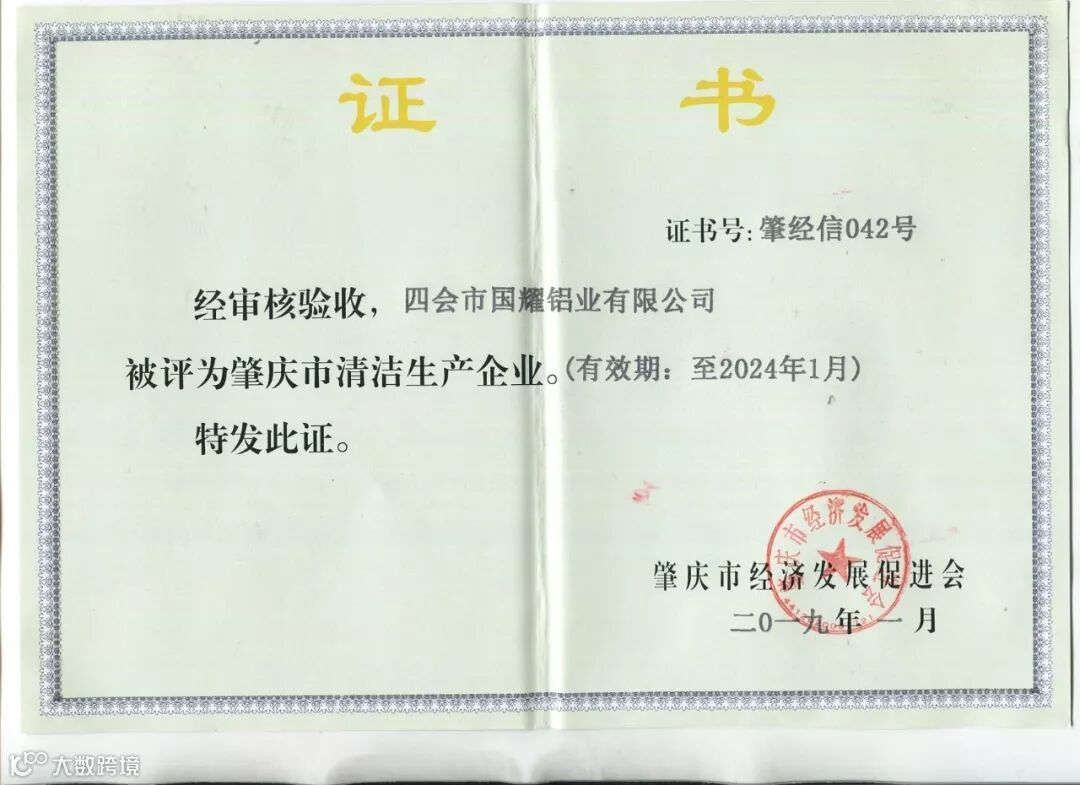 国耀铝业获得肇庆市清洁生产企业的荣誉,体现了我司在节能减排,绿色生产等环保方面做出成绩,做出榜样,在肇庆当地,能获此荣誉的企业,更是屈指可数。