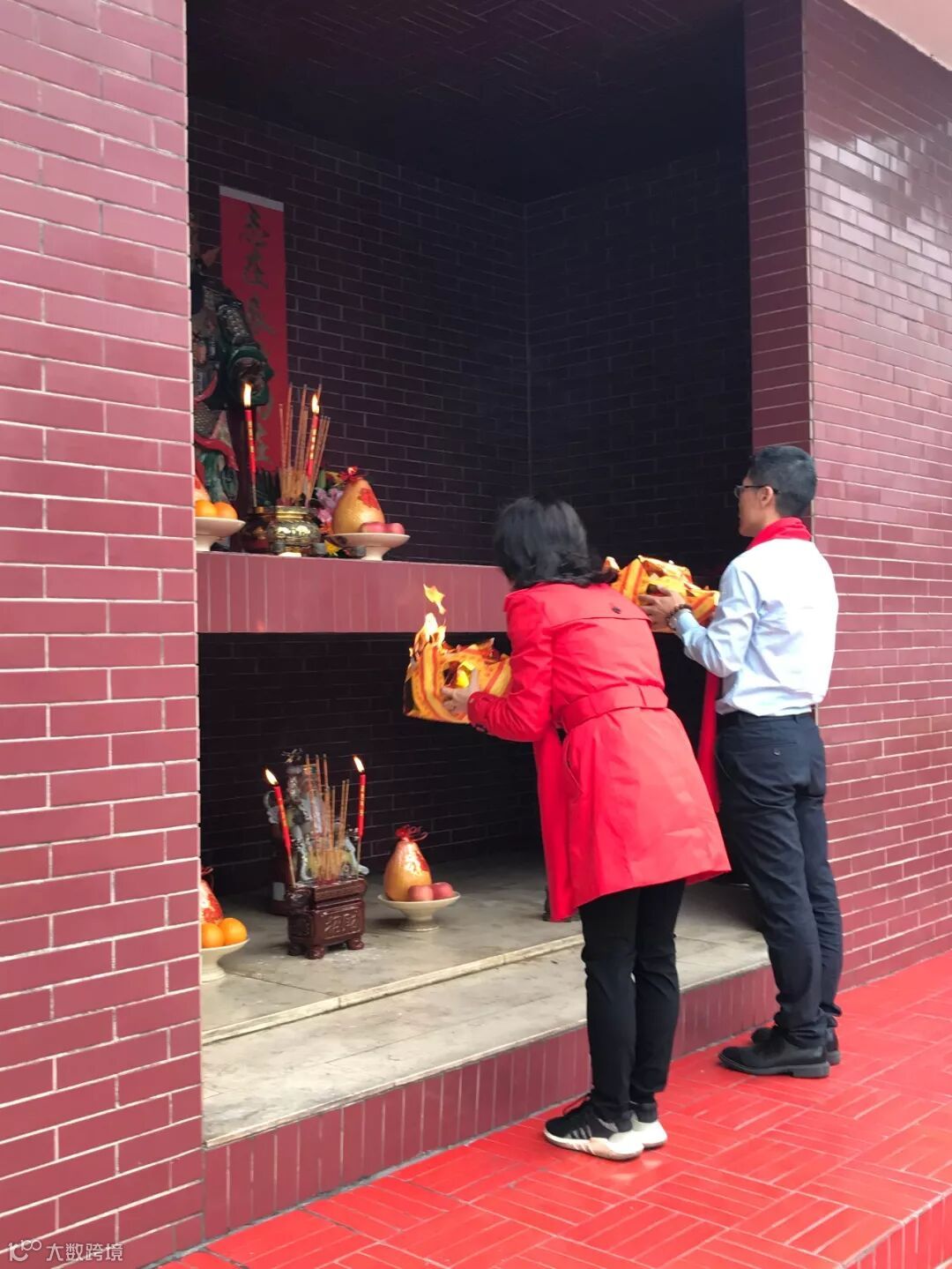 公司领导层拜神祈福,祈求今年事事大吉,全体员工身体健康,工作顺利。