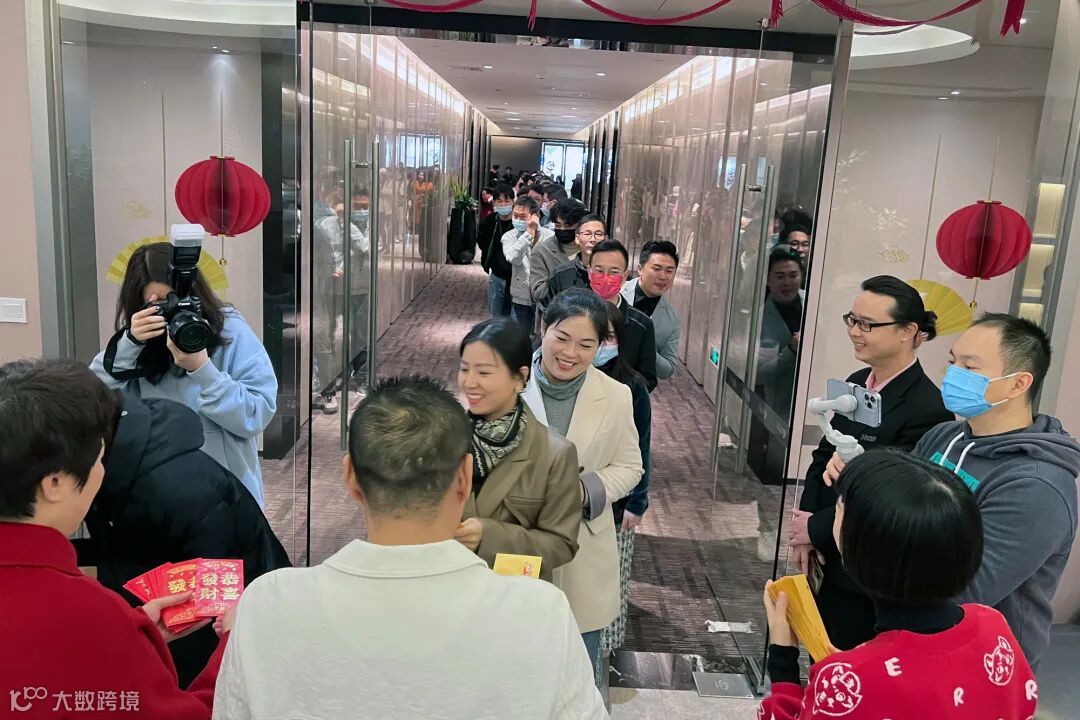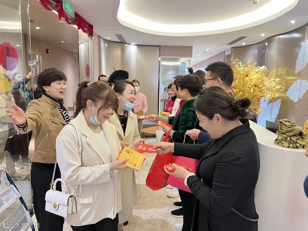 伙伴们兴奋不已!长长的队伍带着雀跃期待!笑意盈盈收红包!庆开工!