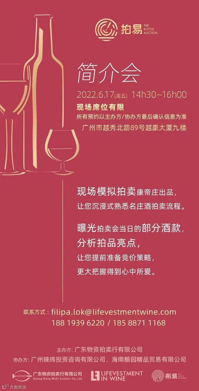 为了让大家更好地涉猎佳酿,我们特地为各位藏酒家们于6月17日星期五准备一场拍卖会简介会,与大家一同提前揭秘和体验这众星云集的拍卖会。