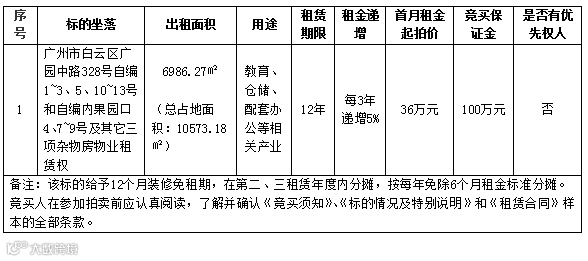 广州市白云区广园中路328号物业租赁权联合拍卖公告标的的情况及特别说明