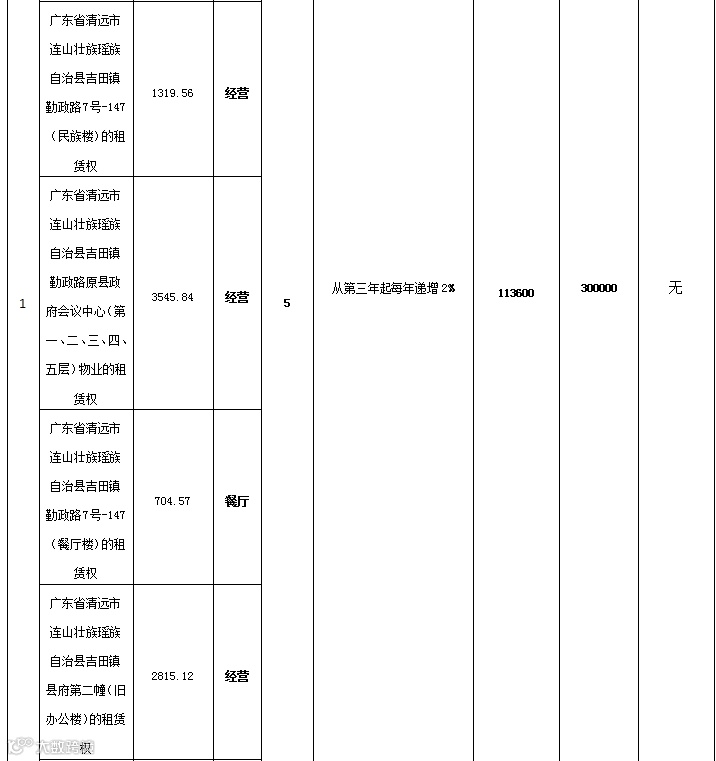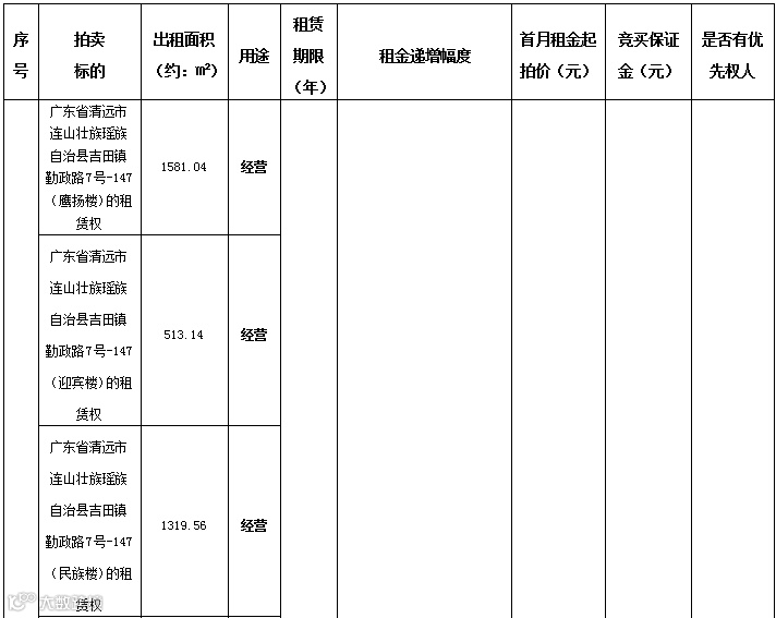 以上10处物业租赁权整体拍卖,出租面积合计约14200.28㎡。