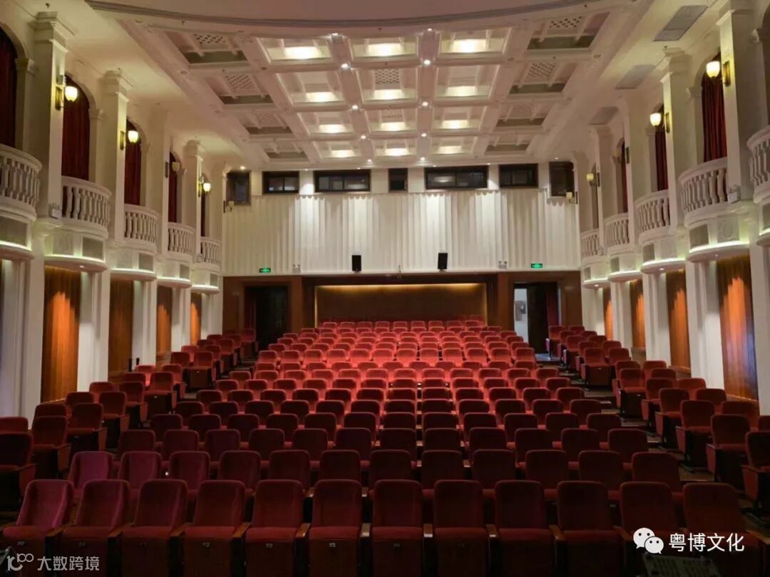 剧场观众厅共设248个座席,舞台设计均参考粤剧表演舞台要求,能表演常规大戏。剧场有先进的声光电系统,舞台背后设有LED大屏幕,同时设置放映机、银幕及相关音响设备,满足现代空间的多元化需求。小剧场装修设计风格则汲取了广州西关老戏院——乐善戏院的空间特色,它建于清朝光绪年间,是广州最早的固定戏院和戏台,曾经位于今天的长寿东路,具有鲜明的清末民初建筑特色,后被拆除。博物馆中的剧场选择乐善戏院建筑风格,希望观众置身剧场中不仅可以欣赏到现代粤剧艺术表演、参与各类的文化传承交流活动,同时也仿佛回到清末民国初年粵剧刚刚进入戏院表演时的原真场景之中,伴随历史记忆感受传统文化的魅力。