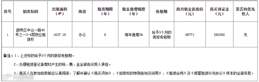 6.此次拍卖标的情况、《竞买须知》、《特别告知及说明》、《租赁合同》及《房屋租赁补充协议》样本等资料作为本公告附件内容在交易平台一并发布,请各竞买人在拍卖前登录交易平台,并详细查看本公告附件内容。