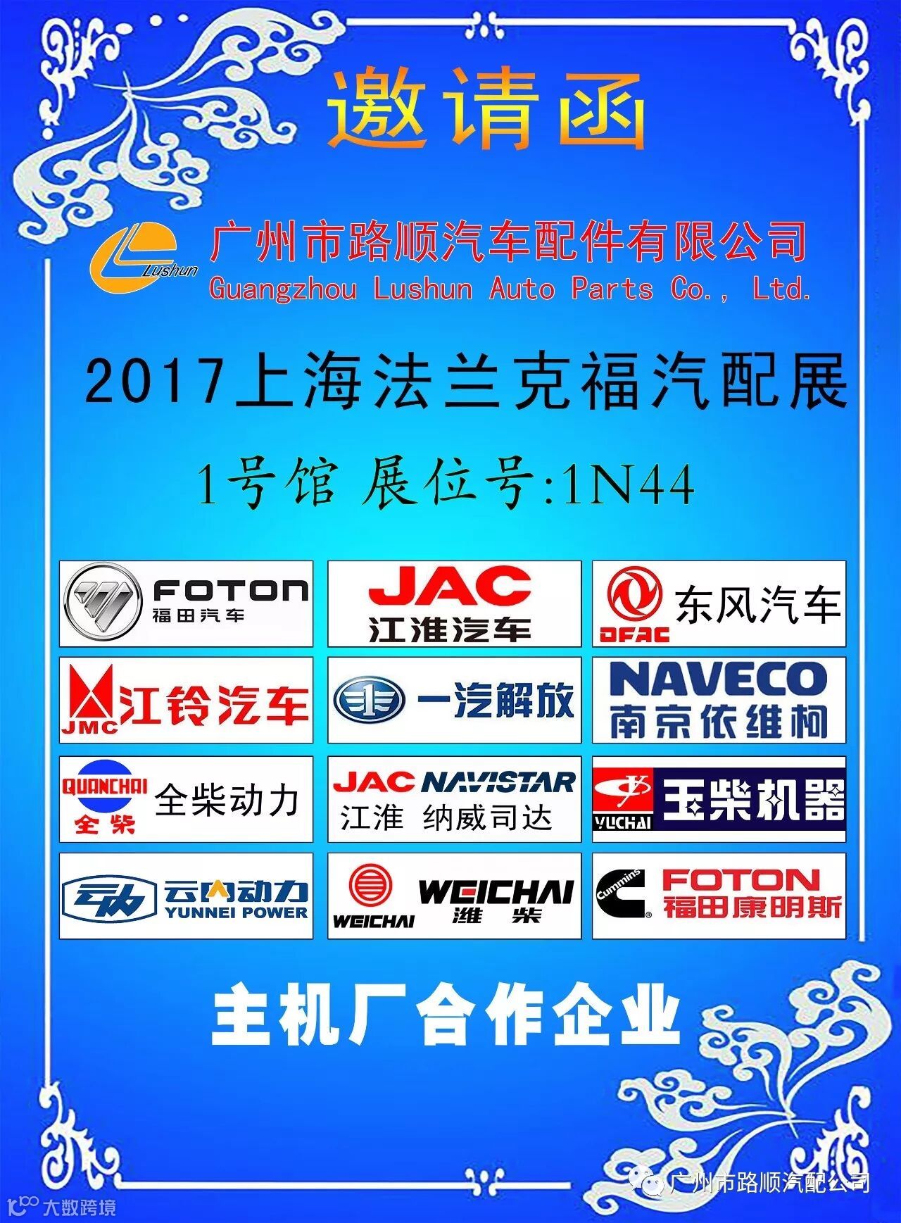 今年展览面积达340,000平方米,预计将吸引来自40个国家及地区的6,000多家企业参展。约140个国家及地区的130,000余名专业观众将莅临现场。广州市路顺汽车配件有限公司展位(1号馆 展台1N44)诚邀您的莅临!