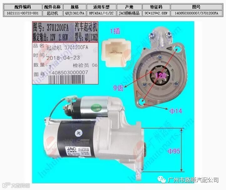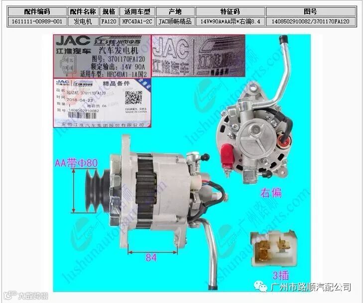 广州市路顺汽配公司广州市路顺汽车配件有限公司是安徽江淮汽车集团股份有限公司的华南地区的销售中心,以下JAC顺畅精品 发电机和起动机大量到货,质量保证,价格从优,欢迎广大客户朋友来电咨询采购!