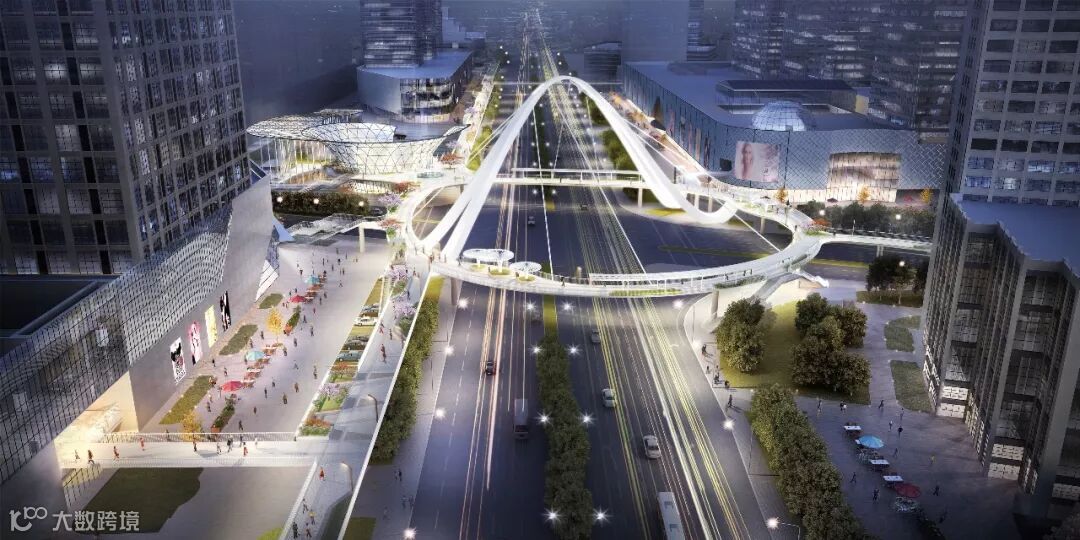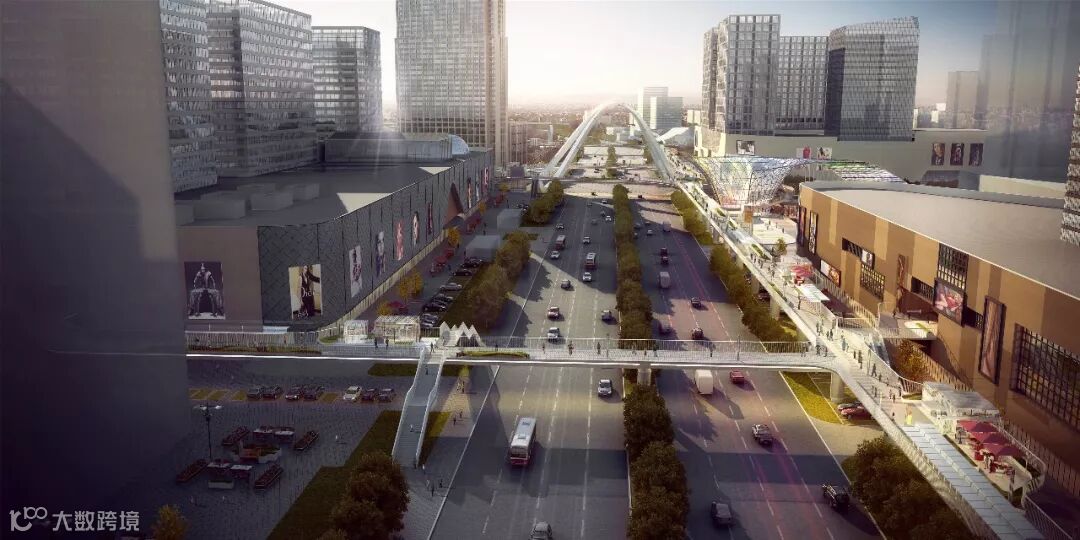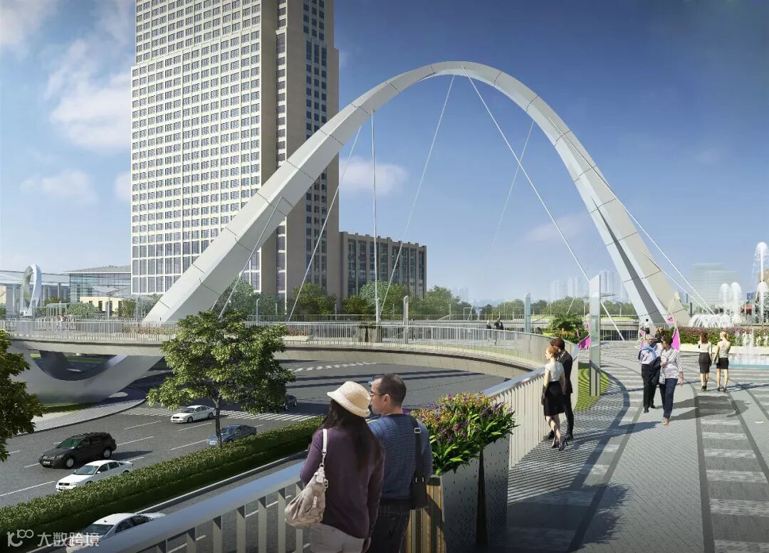作为温州高铁新城产城融合PPP项目的亮点项目,该空中连廊以上海陆家嘴空中连廊为标杆,引入韩国设计团队,作为温州动车南站交通枢纽与周边配套商业的人行主要通道。届时,通过连廊与商场的各个交接点,行人可以自由穿梭于各商场之间,不受地面车流的影响,商城间形成紧密联系,共创一体化智慧商圈。项目采用分期规划的策略,一期工程建筑面积10620平方米,桥梁标准段宽度5米,长度约1765米。