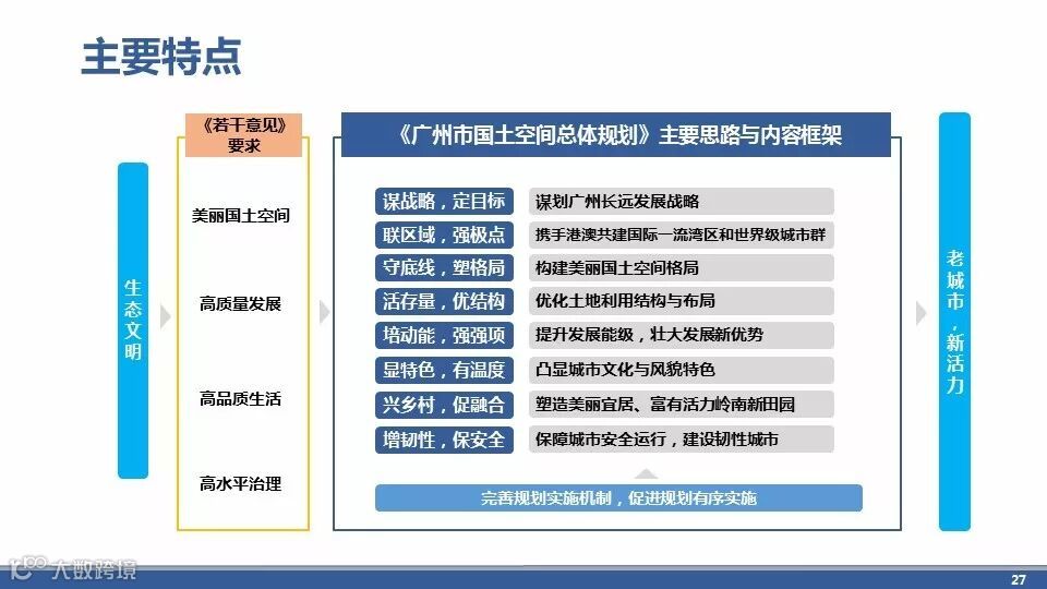 广州市国土空间规划探索,从规划理念创新入手,推动规划从单一土地利用到自然资源资产管控转变,将规划编制过程作为共治共享的社会治理过程,把城市设计作为解决问题的重要手段,形成了以“一美三高”为特点的国土空间规划成果。