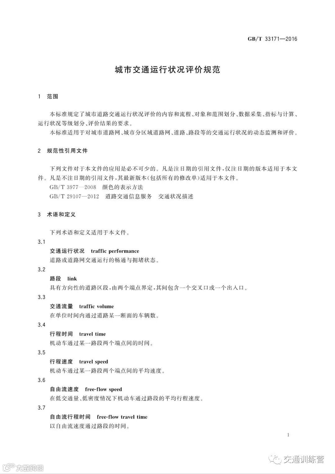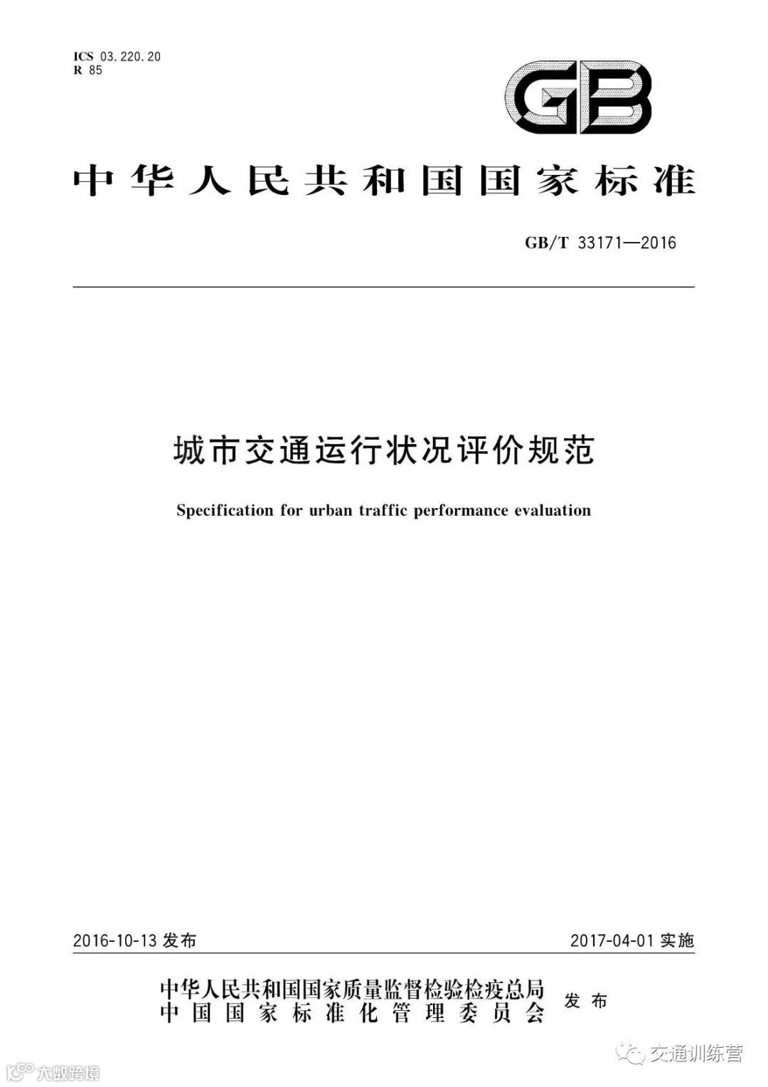 城市交通运行状况评价规范(国标)