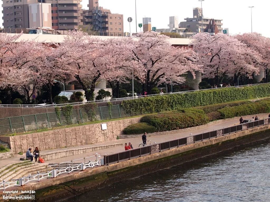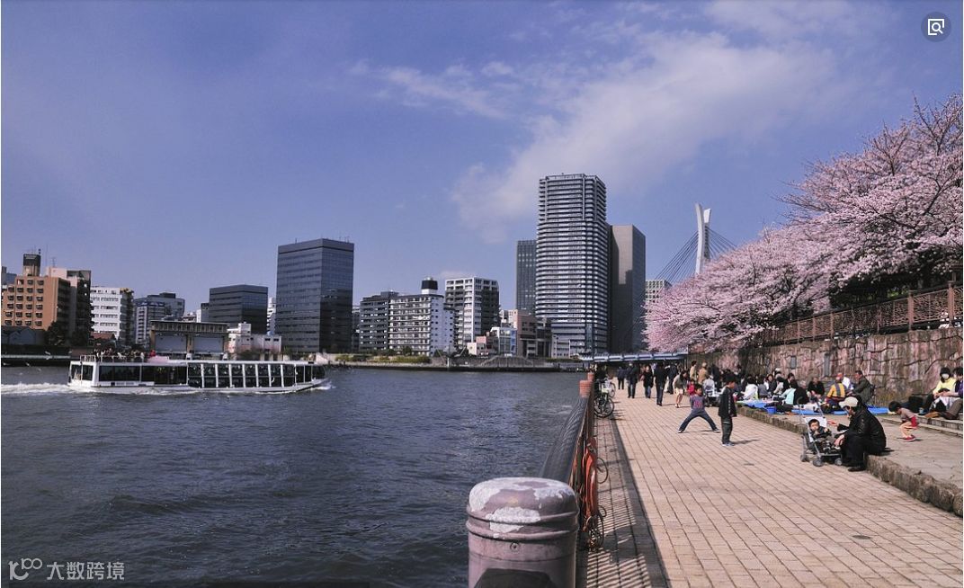 位于浅草隅田川河畔的隅田公园,以江户时期的"墨堤之樱"而闻名于世,古有"长堤十里花如云"的美称。隅田川的两岸排列着长达1公里以上的樱花树木,多达700多株。