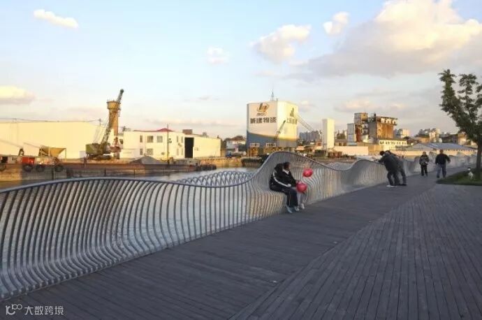 即可解决适应河流每年的洪水涨落,竖向高度差近两米,且为此线性公园提出了新的思路,取代以建筑为导向的充满直角拐弯的步,将步道视为一个相对独立的系统——通过自身形态的变化,促进形成一系列与河相连的全新功能联系;