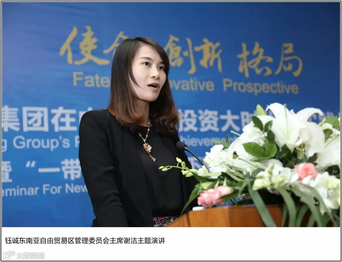 钰诚东南亚自贸区管理委员会主席谢洁介绍了钰诚集团在东南亚自贸区未来的一些发展方向。谢洁表示,钰诚东南亚自贸区将融合多方力量,带动离岸金融、特色生态旅游、高科技种植业、养生医疗、3D打印产业、机器人制造业等一百余个上下游产业共同发展,形成具有辐射效应的区域产业大集群。她认为,钰诚东南亚自贸区开创了中国企业“走出去”新模式。“未来,钰诚东南亚自贸区将成为积极服务于东南亚地区各国间金融资本、投资合作的典范平台,成为推动国际产能和装备合作的黄金通道”。